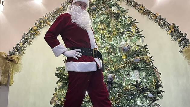 53-летний бизнесмен поделился снимком, на котором предстал в костюме Санта-Клауса с накладной бородой. Он позировал на фоне елки, положив руки на талию.