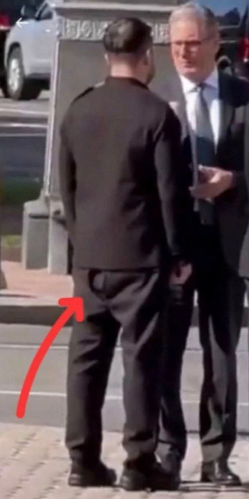 Такой вывод некоторые внимательные пользователи сделали после рассмотрения серии субботних снимков из Киева, на которых Зеленский рядом с женой Еленой приветствует премьер-министра Великобритании Кира Стармера и президента Франции Эммануэля Макрона. На ягодицах Зеленского усмотрели молнию.