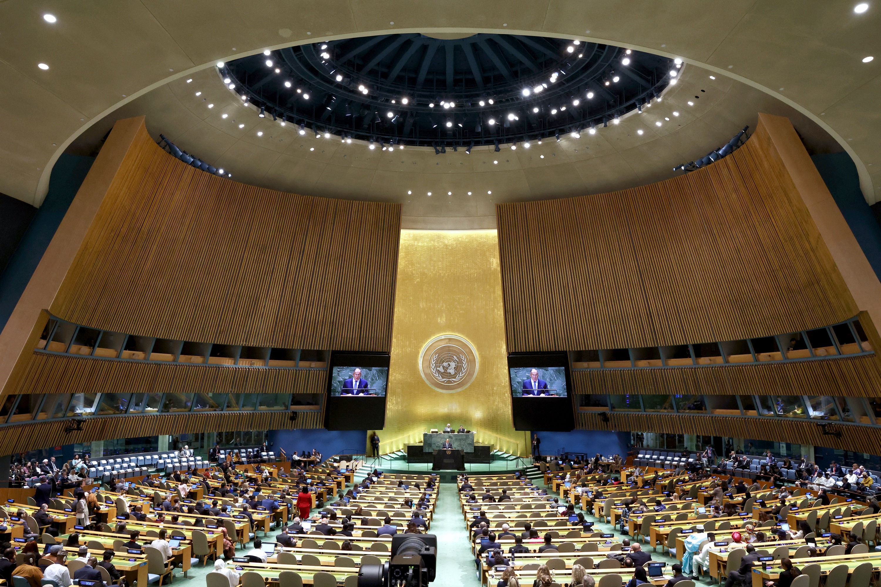 Помимо помещений секретариата ООН в комплекс входят зал Генеральной Ассамблеи (это самое большое помещение, оно вмещает 1800 человек, именно там выступают лидеры стран), библиотека имени Дага Хаммаршельда, центр для посетителей, помещения некоторых агентств ООН. В свое время зал Генассамблеи проектировался совместными усилиями группы из 11 архитекторов, и это единственный зал заседаний, там имеется эмблема ООН, и в нем нет ни одного дара от государств - членов организации, что должно подчеркнуть ее международный характер. Периодически в СМИ появляется информация о том, как в том самом зале Генассамблеи протекает крыша.