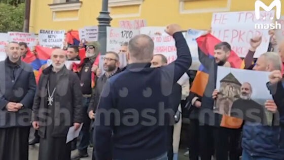 Десятки армян вышли на митинг в Москве против политики премьер-министр республики Никола Пашиняна. Об этом сообщает Telegram-канал Mash.