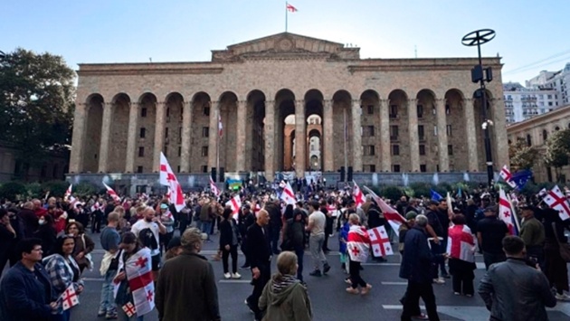 Отмечается, что против агрессивных митингующих, ворвавшихся во двор резиденции грузинского лидера, применили водомет. Также против участников протеста применили перцовый спрей.