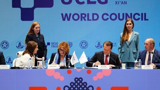 В китайском городе Сиань Ассоциация городов и муниципалитетов стран БРИКС+ и Всемирная организация "Объединенные города и местные власти" (ОГМВ) подписали меморандум о взаимопонимании. Документ, направленный на развитие межмуниципального взаимодействия и повышение эффективности городов, был заключен почетным председателем Ассоциации БРИКС+ Ильсуром Метшиным и генсекретарем ОГМВ Эмилией Сайз.