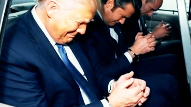 Герои выложенного в соцсеть видео очень похожи на президента США Дональда Трампа и министра войны Пита Хегсета, оба появляются в кадре в наручниках.