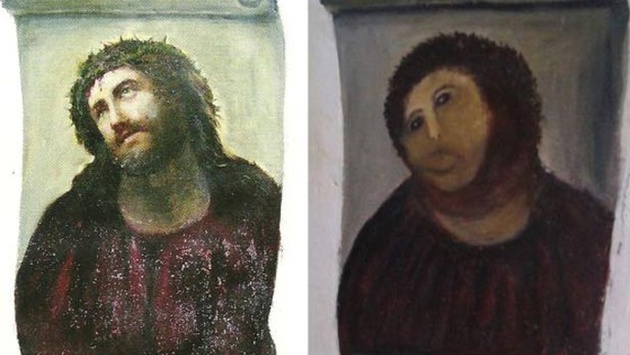 В 2012 году женщина решила подкрасить фреску в храме Сантуарио-де-Мизерикордия города Борха под Сарагосой. Она безнадежно испортила фреску, которую с тех пор стали называть «пушистым Иисусом», «обезьяньим» или «картофельным» Христом.