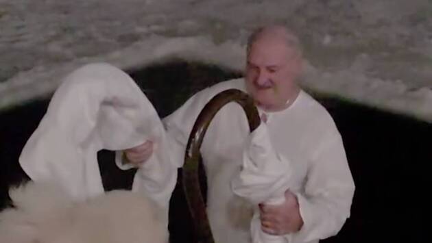 Президент Белоруссии Александр Лукашенко принял участие в крещенских купаниях. Кадры публикует Telegram-канал «Пул Первого».