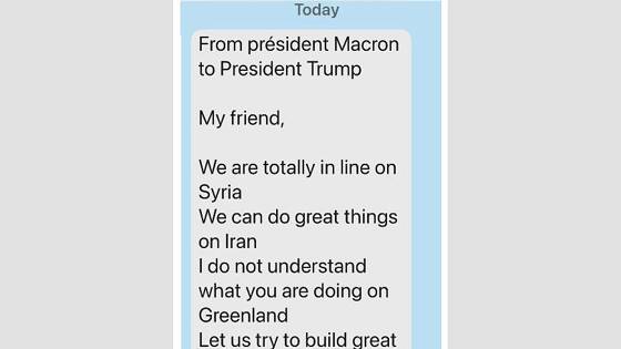 «Мой друг, у нас одинаковое видение ситуации в Сирии, мы можем делать великие дела в Иране. [Но] я не понимаю, что ты делаешь в Гренландии», — написал Макрон Трампу в мессенджере.