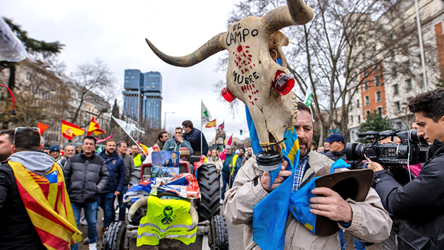 Тысячи испанских фермеров съехались в Мадрид для участия в протестах